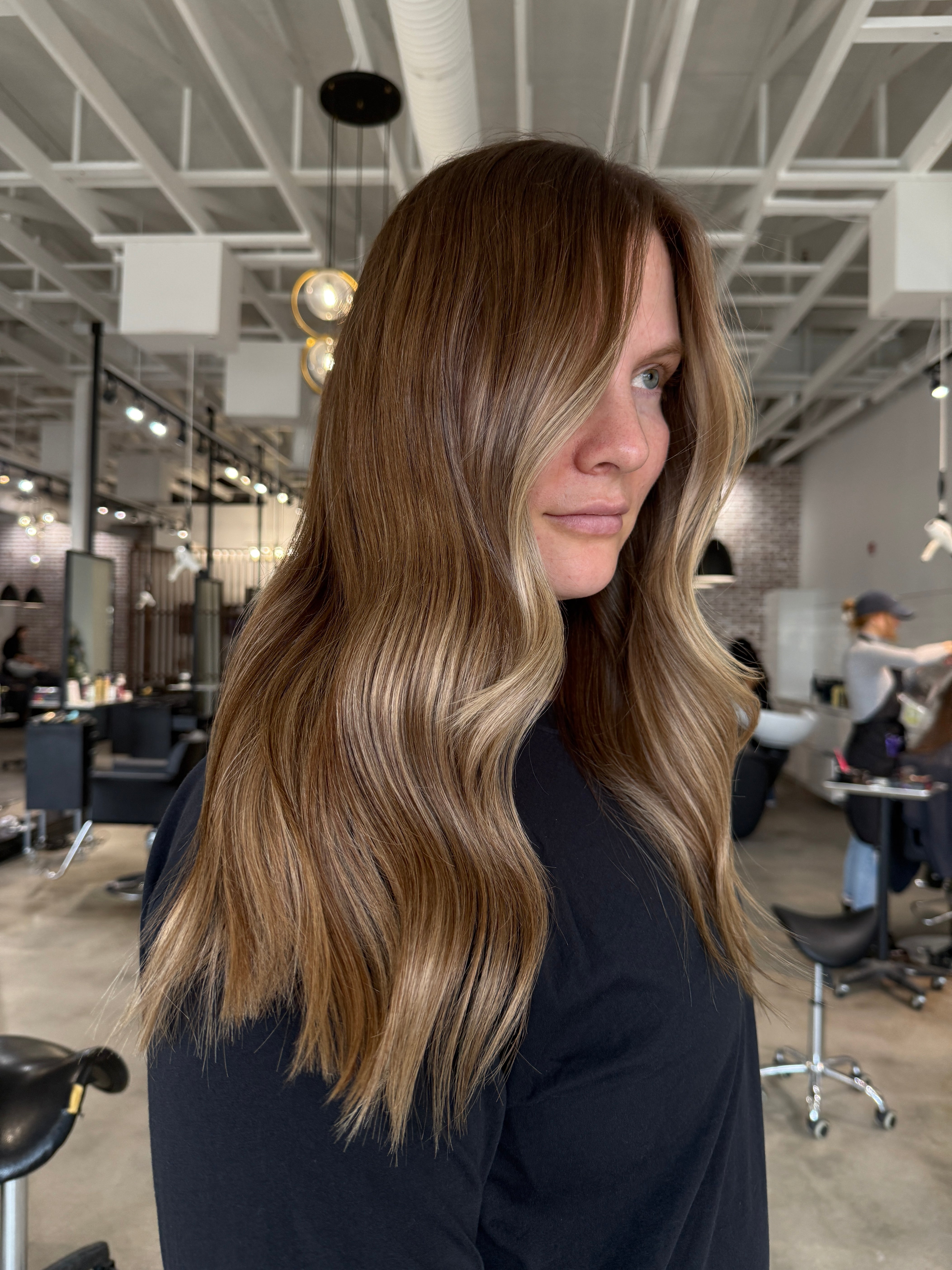 To price the cost of color used, we use an app called SalonScale that weighs each ounce mixed. SalonScale charges can vary from $20.00+ for roots, to $75.00+ for a balayage, to $200.00+ for a color correction or large transformation. Because of these factors, estimates for your service are difficult to calculate.